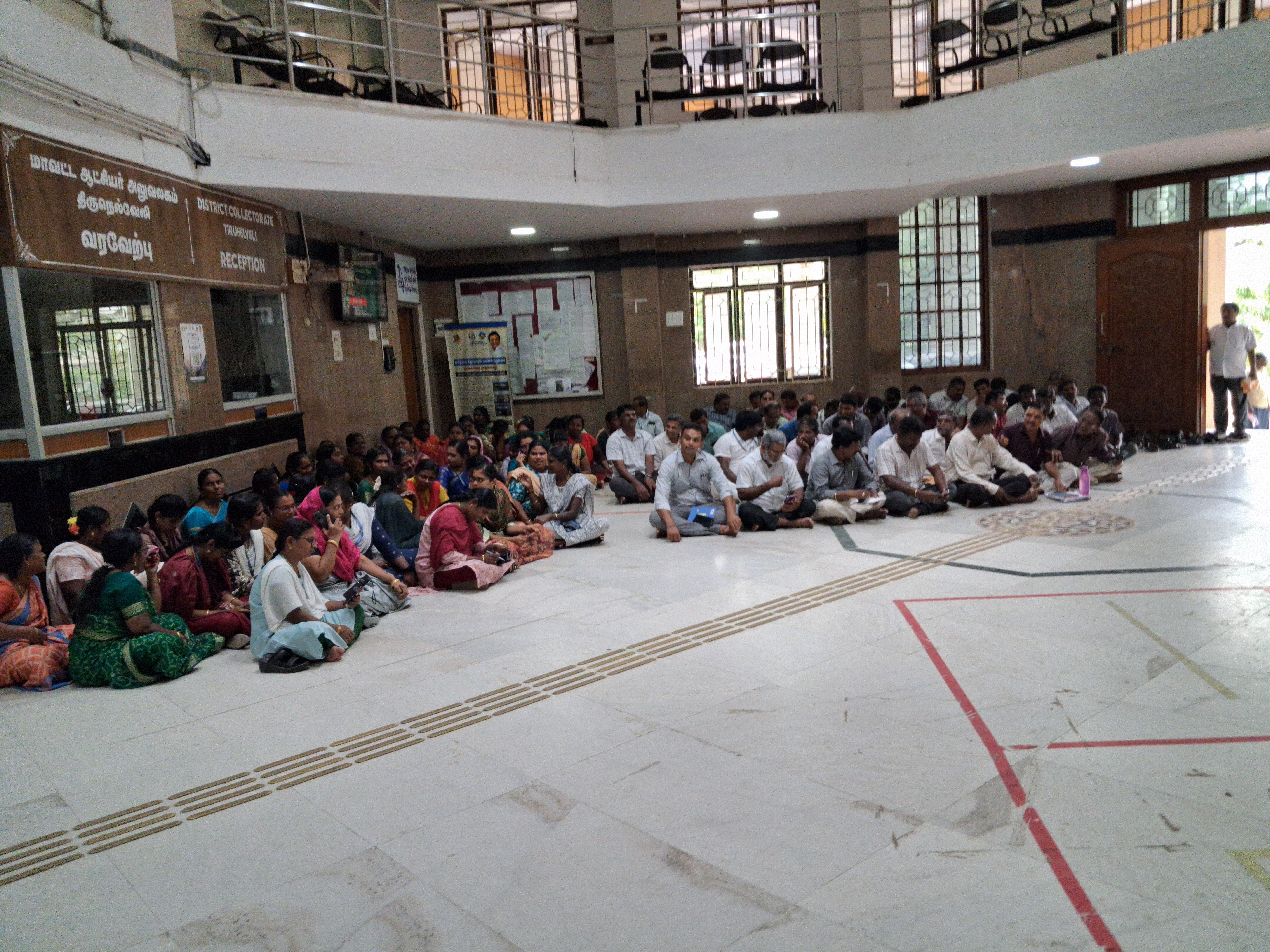 “எங்களது கோரிக்கைகளை கேட்பதற்கு மாவட்ட ஆட்சியர் மற்றும் மாவட்ட வருவாய்த்துறை அலுவலர் நேரில் வரவேண்டும்” என அவர்கள் போராட்டத்தில் ஈடுபட்டு வருகிறார்கள்.