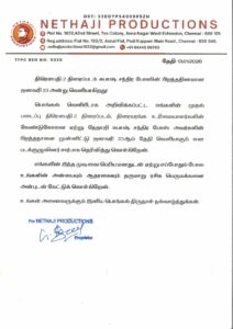 நேதாஜி சுபாஷ் சந்திரபோஸ் அவர்களின் பிறந்தநாளை முன்னிட்டு வரும் 23ம் தேதி “திரௌபதி-2” திரைப்படம் வெளியாகும் என அறிவிப்பு வெளியாகி உள்ளது.